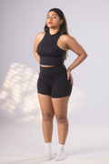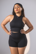 Elevate your look instantly! This sleek crop top features a sophisticated mock neck that brings serious style energy to any outfit. The built-in shelf bra means no extra layers needed - just throw it on and you're ready to conquer the day. Made with our signature luxe-feel fabric that hugs you in all the right places. This is elevated athleisure done right!